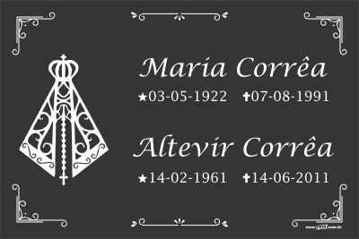 As Placas Gavetário para Túmulo, Lápide com foto, são produzidas em Alumínio Composto 3mm (ACM), material com baixo indice de furto graças ao seu processo de fabricação que impede que tenha valor comercial para vândalos, não se tornando um produto com objetivo de roubo em cemitérios como as placas fundidas de bronze e alumínio.