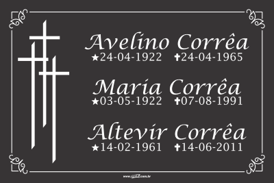 Os Dados para a confecção da Placa: Nome, Data de Nascimento, Data de Falecimento, Frase, podem ser enviados no final da compra no campo mensagem ao vendedor ou se preferir pelo Whatsapp: 047 98404-1001 ou E-mail: vendas@trik.com.br após a aprovação do pagamento, informando o Nº do Pedido.