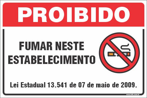 Placa de fumante de proibido Placa de fumante de proibido fumar neste estabelecimento Lei Estadual 13.541 de 07 de maio de 2009.